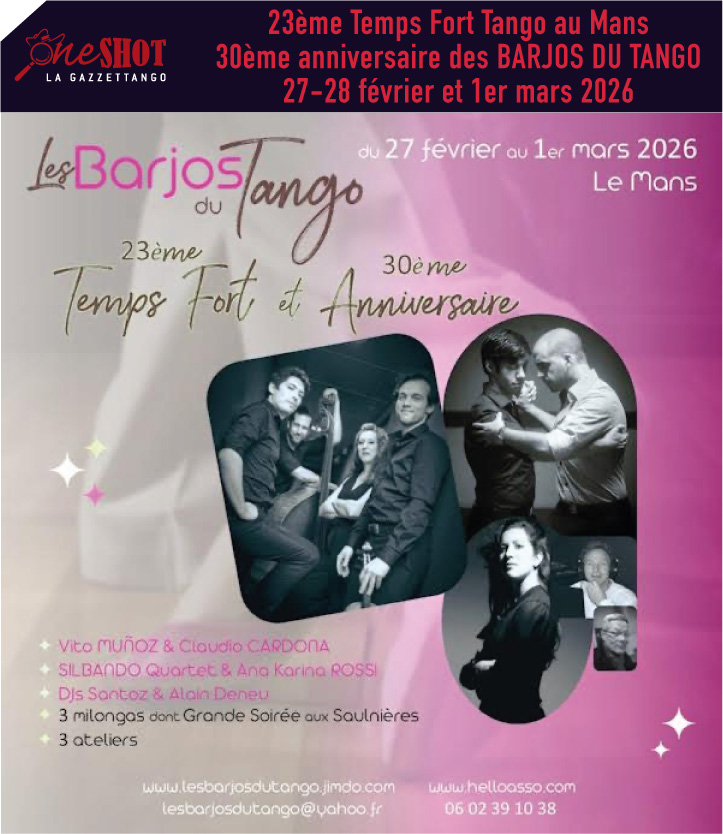 23ème Temps Fort Tango au Mans et 30ème anniversaire des Barjos du Tango – 27-28 février et 1er mars 2026