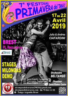 Sam. : 11h00 Débutants – 14h00 Inter 15h45 Milonga – 17h30 Confirmés