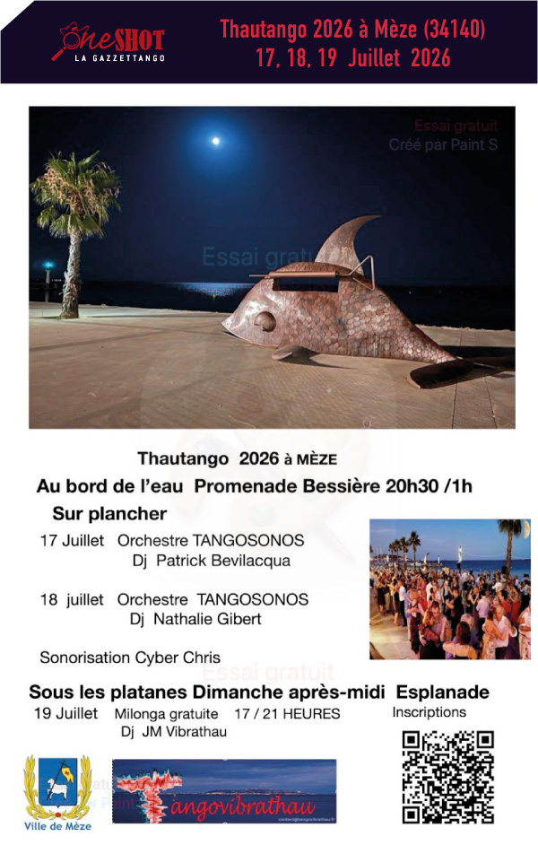 Informations /inscription sur tangovibrathau.fr avec Helloasso ( soirée 18€ pass 2soirées 30€ )
